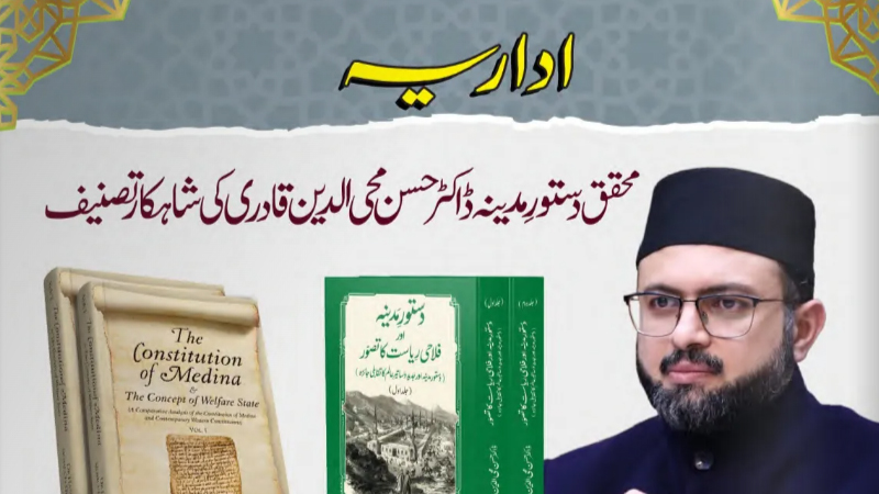 ایوان اقبال لاہور میں منہاج القرآن انٹرنیشنل کی سپریم کونسل کے چیئرمین ڈاکٹر حسن محی الدین قادری کی دو جلدوں اور 14 سو صفحات پر مشتمل تجزیاتی تحقیق”دستور مدینہ اور فلاحی ریاست کا تصور“ کی تقریب رونمائی انعقاد پذیر ہوئی۔ تقریب سے خطاب کرتے ہوئے تحریک منہاج القرآن کے بانی و سرپرست شیخ الاسلام ڈاکٹر محمد طاہرالقادری دامت برکاتہم العالیہ نے کہا کہ میثاق مدینہ پر میری پہلی کتاب اکتوبر 1999ء میں شائع ہوئی جس میں، میں نے دستوری زبان میں میثاق مدینہ کے 63 آرٹیکل قائم کئے پھر میں نے یہ کتاب ڈاکٹر حسن محی الدین قادری کو دی اور کہا کہ آپ دستور مدینہ کا باریک بینی کے ساتھ امریکہ، برطانیہ، یورپ کے جدید دساتیر سے تجزیاتی موازنہ کریں اور اسے اپنی پی ایچ ڈی کا موضوع بنائیں۔ شیخ الاسلام نے زبردست الفاظ میں مبارکباد دیتے ہوئے کہا ”اگر میں اپنی جدید موضوعات پر لکھی ہوئی ان سینکڑوں کتب میں سے نہایت ہی پسندیدہ 100 کتب منتخب کر لوں اور وہ ساری کی ساری 100 کتب ڈاکٹر حسن محی الدین قادری کی اس ایک کتاب پہ قربان کر دوں، تو یہ کتاب اس سے بھی زیادہ حقدار ہے۔یہ میرے جذبات ہیں“۔بلاشبہ نابغہ عصر، مجدد رواں صدی شیخ الاسلام کی طرف سے یہ الفاظ ہر اعتبار سے تاریخی اور قابلِ قدر ہیں۔26 جنوری 2024ء کے روز ایوان اقبال لاہور میں منعقد ہونے والی تقریب بہت سارے حوالوں سے تاریخ ساز تقریب ہے۔ کتاب کے مصنف، محقق، ماہر اسلامی قانون ڈاکٹر حسن محی الدین قادری نے انتہائی معلومات افزا گفتگو کرتے ہوئے کہا کہ دستور مدینہ فکر، نظریہ یہاں تک کہ الفاظ کے اعتبار سے بھی اپنی مثال آپ ہے۔ دستور مدینہ میں اس وقت کی کسی سپر پاور کے نظام کو کاپی نہیں کیا گیا، اگر دستور مدینہ کہیں سے کاپی کیا گیاہوتا تو یہ یقینا کفار مکہ اس پر تنقید کرتے۔ تقریب میں اسلامی نظریاتی کونسل کے چیئرمین پروفیسر ڈاکٹر قبلہ ایاز، اوریا مقبول جان، پرنسپل پاکستان کالج آف لاء پروفیسر ہمایوں احسان ایڈووکیٹ، ڈاکٹر خالد رانجھا، صدر لاہور ہائیکورٹ بار اشتیاق اے خان، سینئر وکیل اظہر صدیق ایڈووکیٹ، خرم نواز گنڈاپور، میاں انجم نثار، ڈاکٹر رُسنی حسن، ڈاکٹر منور سلطانہ مرزا، ڈاکٹر فاطمہ سجاد نے خطاب کیا۔ تقریب رونمائی سے عرب ممالک سے شیوخ نے اپنے خصوصی آڈیو، ویڈیو پیغامات بھجوائے۔ تقریب میں ماہر آئین، سینئر ایڈووکیٹ سپریم کورٹ آف پاکستان حامد خان، جسٹس (ر) ناصرہ جاوید اقبال، پروفیسر ڈاکٹر حسین محی الدین قادری، بریگیڈیئر(ر) اقبال احمد خان نے شرکت۔ تقریب میں منہاج القرآن انٹرنیشنل کے نائب ناظمین اعلیٰ، ڈائریکٹرز شعبہ جات، فورمز کے صدور، منہاج یونیورسٹی لاہور کے لاء ڈیپارٹمنٹ کے طلباء اور فیکلٹی ممبرزنے بھرپور شرکت کی۔ تقریب میں کالج آف شریعہ اینڈ اسلامک سائنسز، منہاج گرلز کالج کے اساتذہ اور طلباء بھی بڑی تعداد میں شریک تھے۔ ڈاکٹر حسن محی الدین قادری نے اپنی کتاب میں دلائل سے ثابت کیا ہے کہ میثاق مدینہ کائناتِ انسانی کا پہلا تحریری دستور ہے۔ میثاق مدینہ یا دستور مدینہ پر یہ پہلی جامع اور کثیر الجہات تجزیاتی تحقیق ہے، میثاق مدینہ کے مختلف آرٹیکلز کی تائید اور توثیق کے لئے قرآنی آیات اور احادیثِ مبارکہ درج کی گئی ہیں، یوں براہ راست آیات اور احادیث سے استشہاد و استنباط کر کے اس کی حقانیت کو ناقابل تردید دلائل سے ثابت کیا ہے۔ کتاب کے مشمولات کی تصدیق و توثیق پر عالم اسلام کی ممتاز یونیورسٹی جامع الازہر کے شیوخ کی تقاریز شامل ہیں۔ یہ تحقیقی کتاب دستور مدینہ کا امریکی برطانوی اور یورپی دساتیرسے تقابلی موازنہ پیش کرتی ہے۔