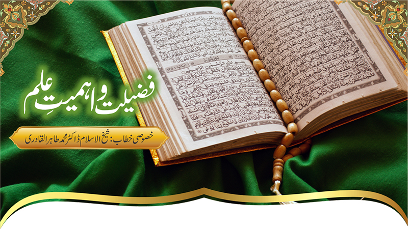 ایک فرد کی انفرادی زندگی ہو یا قوموں کی اجتماعی زندگی سب کی ترقی علم ہی کی بدولت ہے۔ اللہ رب العزت نے جب سب سے پہلے انسان اور اپنے نبی حضرت آدم علیہ السلام کی تخلیق فرمائی اور انہیں اپنی خلافت و نیابت دینے کا ارادہ کیا تو ارشاد فرمایا:
