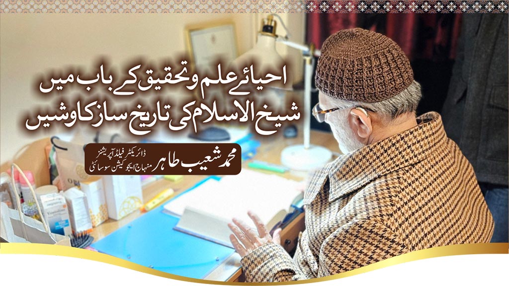 شیخ الاسلام ڈاکٹر محمد طاہرالقادری کی علمی خدمات کا ایک نمایاں پہلو تحقیق ہے۔ آپ کی سیکڑوں تصانیف، تحقیقی مقالات اور علمی منصوبے اس بات کا ثبوت ہیں کہ آپ علم کو محض روایت نہیں بلکہ مسلسل تحقیق اور اجتہاد کا تقاضا سمجھتے ہیں۔ ان کاوشوں کے ذریعے اسلامی فکر کو جدید تناظر میں پیش کیا گیا، انتہا پسندی کے بیانیہ کو علمی بنیادوں پر رد کیا گیا اور تعلیم و امن کے باہمی تعلق کو واضح کیا گیا۔