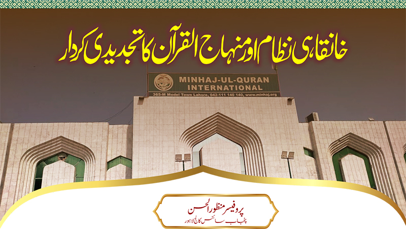 خانقاہی نظام ہمارے روحانی ورثے کا ایک قابلِ فخر باب ہے، جس نے کئی صدیوں تک انسانوں کے دلوں کو اللہ سے جوڑنے کا کام کیا مگر وقت کے تغیر نے اس نظام کو زوال کا شکار کر دیا۔ تحریک منہاج القرآن نے اس عظیم ورثے کو جدید دور میں نئے رنگ، نئی روشنی اور نئے شعور کے ساتھ زندہ کیا۔ یہ ایک ایسی روحانی تحریک ہے جو ماضی کی پاکیزہ روایت کو حال کی ضرورتوں سے جوڑ کر مستقبل کی راہیں روشن کر رہی ہے۔ تصوف کا اصل چہرہ وہی ہے جو شعور، محبت، علم، اخلاص اور خدمت سے روشن ہو اور اس چہرے کو تحریک منہاج القرآن نے آئینے کی طرح زمانے کے سامنے پیش کر دیا ہے۔